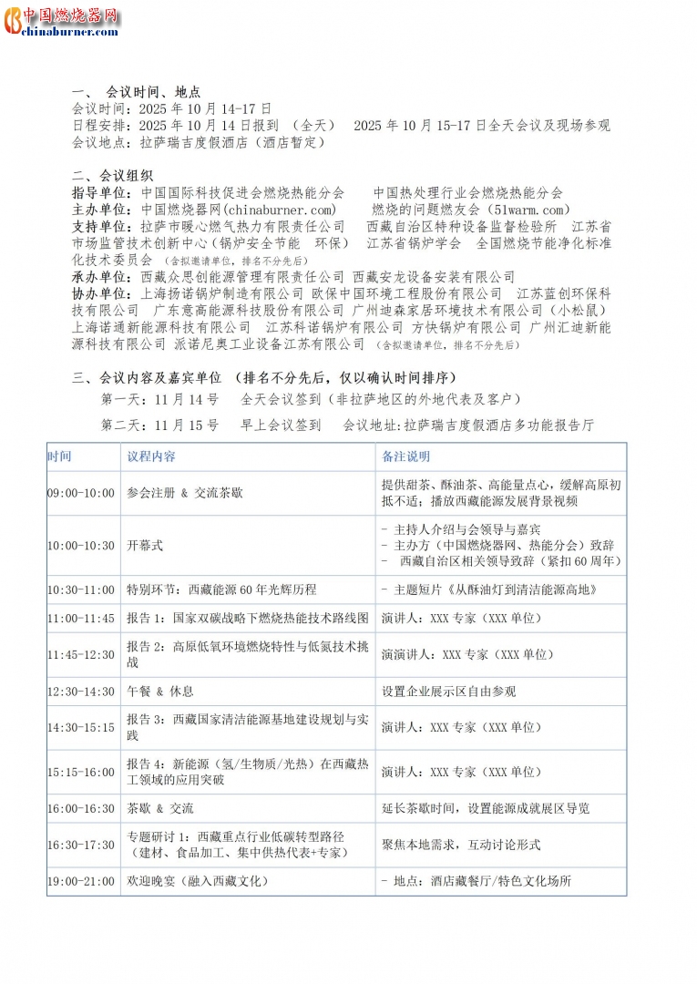 我们期待,这场矗立于世界屋脊的燃烧热能技术交流盛会,能以科技创新献礼西藏六十华诞:用更低氮的火焰,守护雪域生灵赖以生存的净土;用更智慧的能源,点燃高原高质量发展的引擎;用更坚定的共识,共绘西藏“双碳”未来的壮美蓝图!让我们以燃烧之光,照鉴绿色