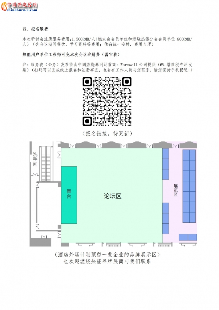 注:服务费(会务)发票将由中国燃烧器网运营商:Warmwell 公司提供(6% 增值税专用发票)